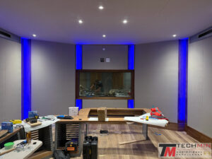 As with any studio installation, the first stage of our work revolved around laying the foundation for connectivity. Conduits for input and output points were installed before the construction of the inner and outer shell walls was complete. This timing was critical, as three layers of drywall were being applied to both the inner and outer walls. By installing the conduits while the framework was still exposed, we ensured seamless integration without compromising the integrity of the finished structure.