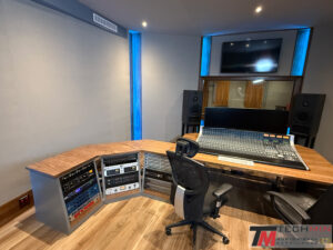 Because some artists prefer to record directly within the control room, additional input and monitoring points were integrated into the power skirting along the right-hand side and back of the room. These panels also included MIDI points, ensuring full compatibility for a wide range of instruments. Similar MIDI points were installed in the live room, supporting modern music production workflows.